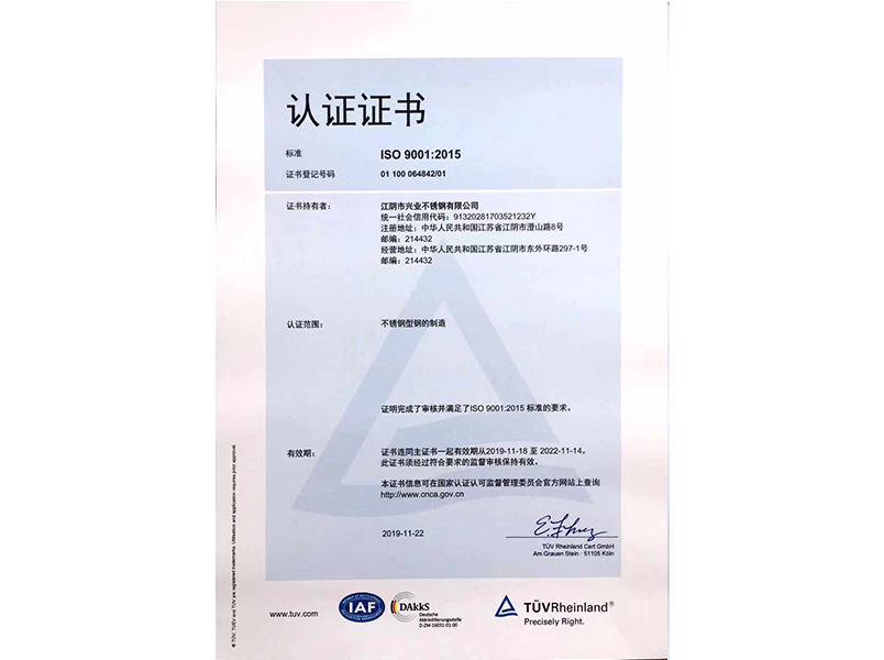 • 按照ISO9001:2015質量管理體系的標準要求,建立了質量管理體系,并通過TUV認證